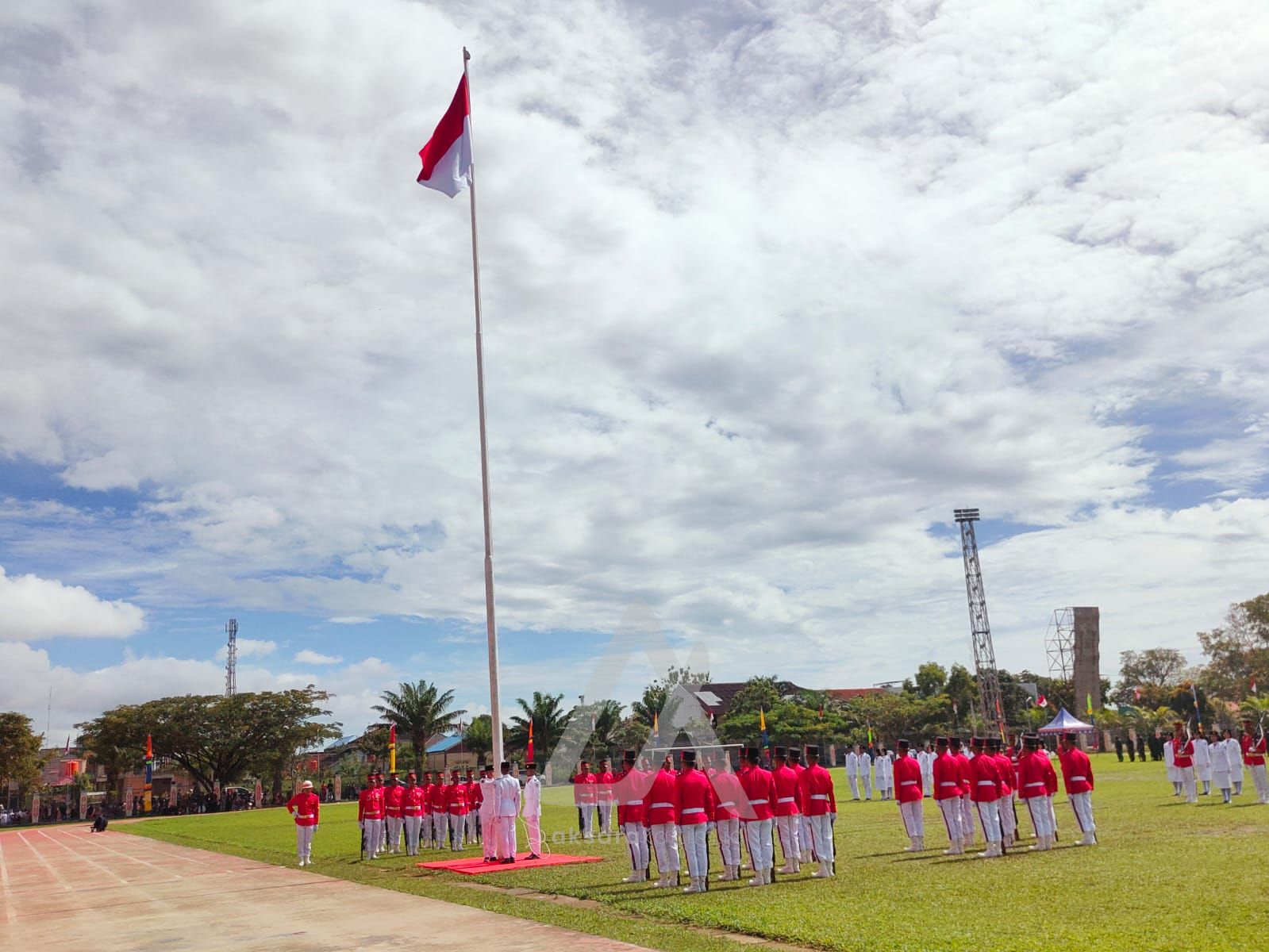 Derap langkah Paskibraka terdengar memasuki lapangan upacara. Raut wajah pasukan terlihat serius.