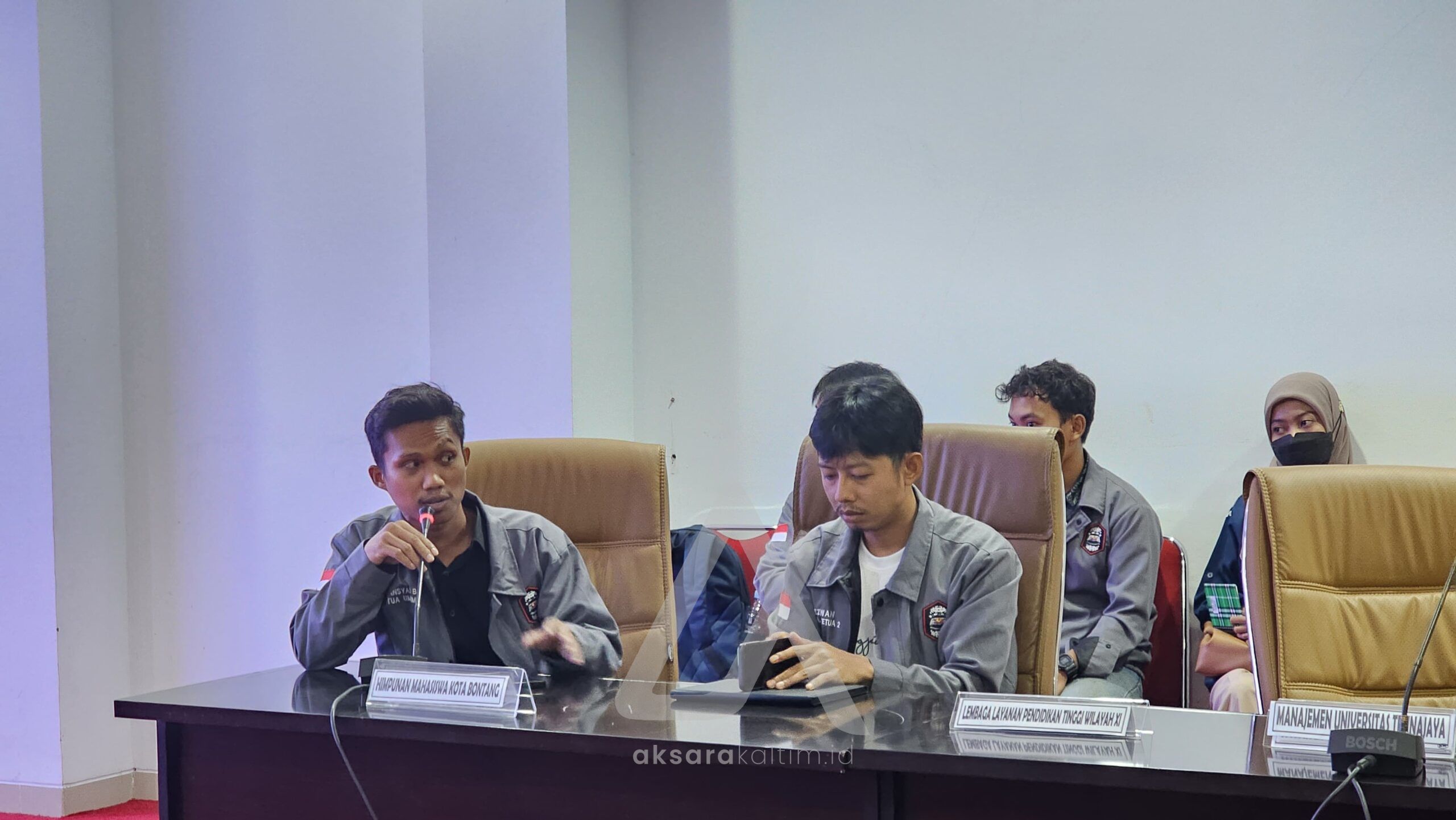 AksaraKaltim – Pengurus Pusat Himpunan Mahasiswa Bontang (PPHMB) mendatangi gedung DPRD Bontang, Senin (16/6/2025). Kedatangan Ketua PPHMB Supiansyah bersama para rekannya untuk menanyakan kejelasan status mahasiswa Universitas Trunajaya.