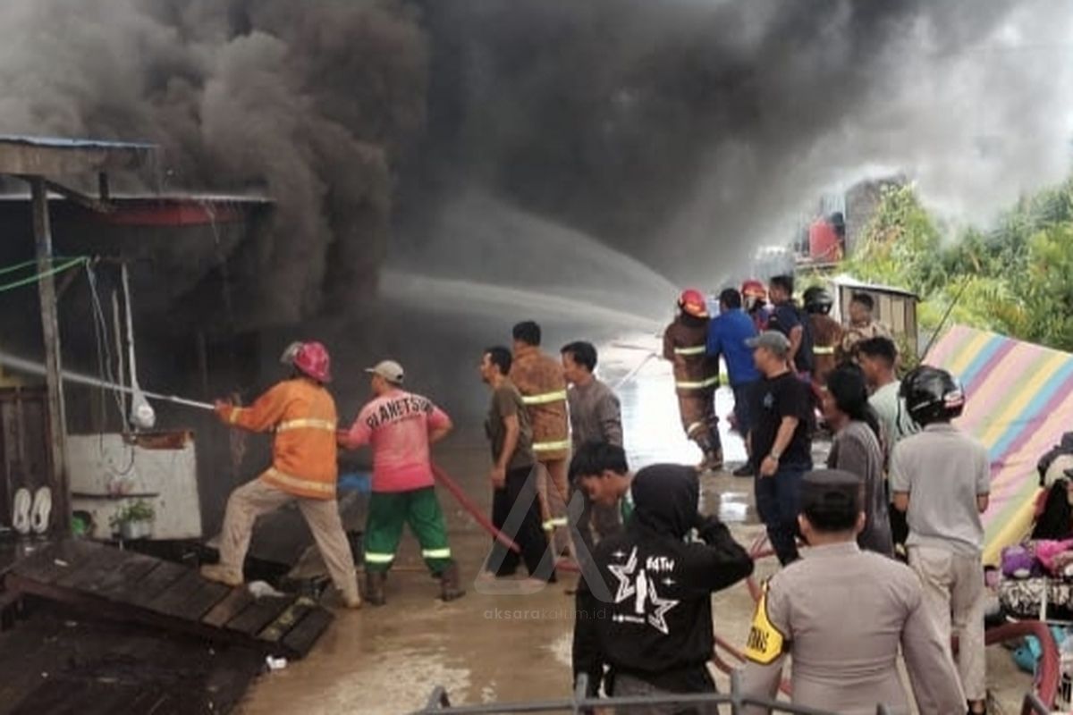 AksaraKaltim – Kebakaran hebat menghanguskan deretan bangunan sewaan di Jalan Poros Anggana, Gang Ulin, RT 21, Desa Sungai Meriam, Kutai Kartanegara, pada Kamis (11/12/2025) siang.