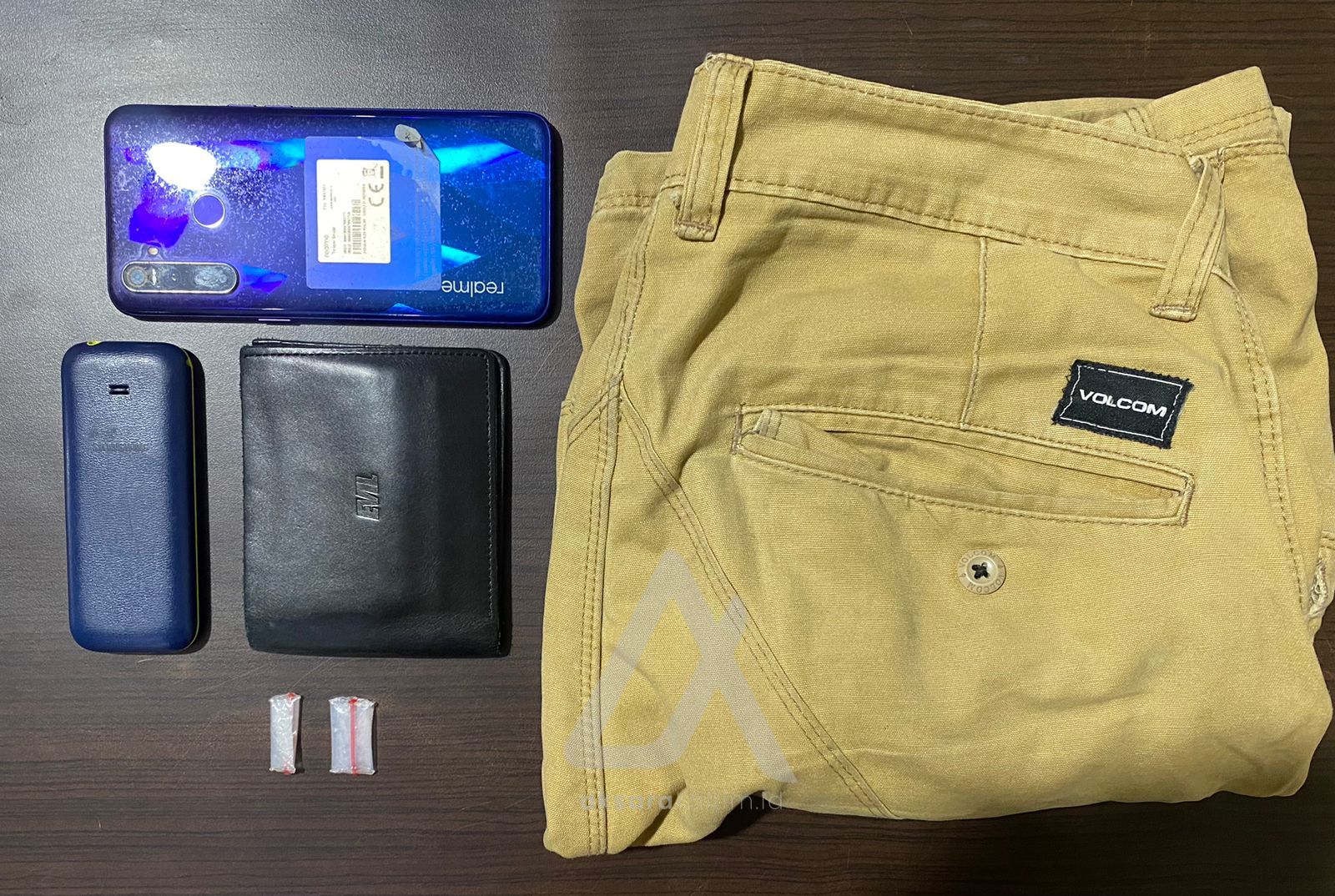 Mereka diringkus di sebuah kos yang sama namun berbeda kamar. Polisi pertama kali menangkap MA. Setelah penangkapan dan dilakukan penggeledahan badan ditemukan barang bukti berupa dua bungkus plastik berisi sabu yang disimpan dalam dompet warna hitam di kantong celana sebelah kiri. Dan satu poket sabu di kantong celana sebelah kanan yang dikenakannya.