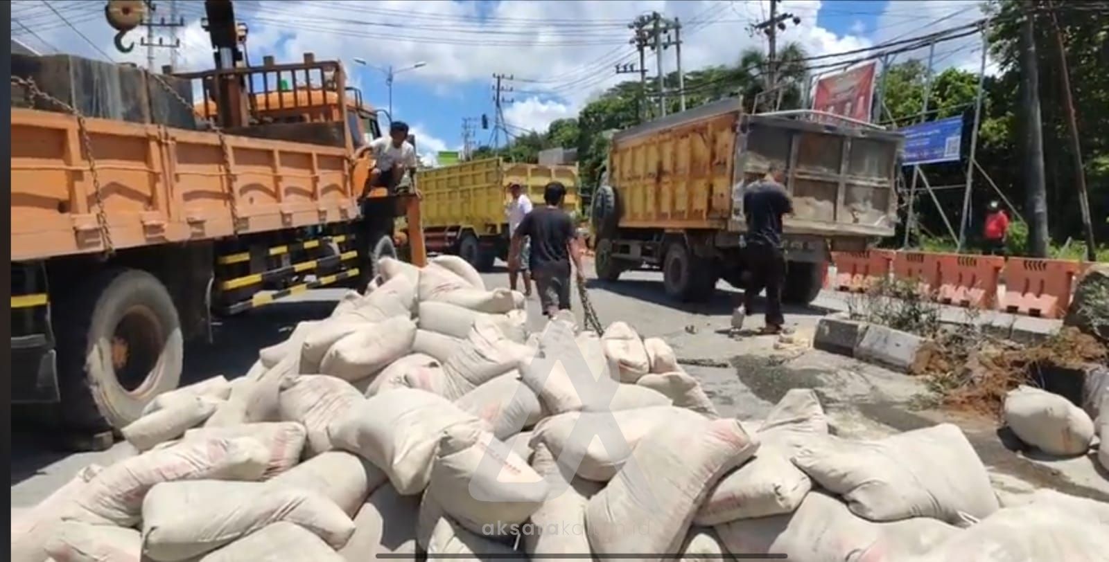 AksaraKaltim – Sebuah truk bermuatan semen terguling tidak jauh dari simpang tiga RSUD Taman Husada Bontang, Rabu (7/9/2022).